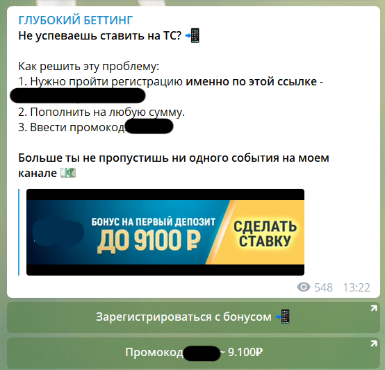 - сделано все, чтобы подписчики проигрывали у указанного букмекера.