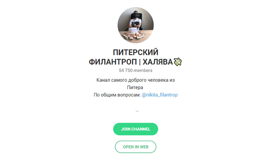 Обзор канала в телеграмме Питерский филантроп (НИКИТА. ФИНАЛ.)