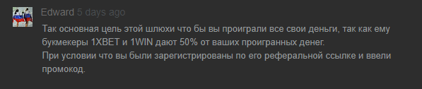 Почему мы выбрали Селеба Из Гетто для своего обзора? – потому что на канале идет постоянная реклама мошеннического проекта Dream Big Bet со ставками на спорт, где предлагают купить ставки с 85% проходом и матчи от инсайдеров, такие услуги предоставляют исключительно мошенники. Vlad Litvinov не только предлагает приобрести «кота в мешке», но также зарабатывает на рекламе не очень хороших букмекерских контор с партнерской программой. Разоблачение Dream Big Bet читайте здесь.