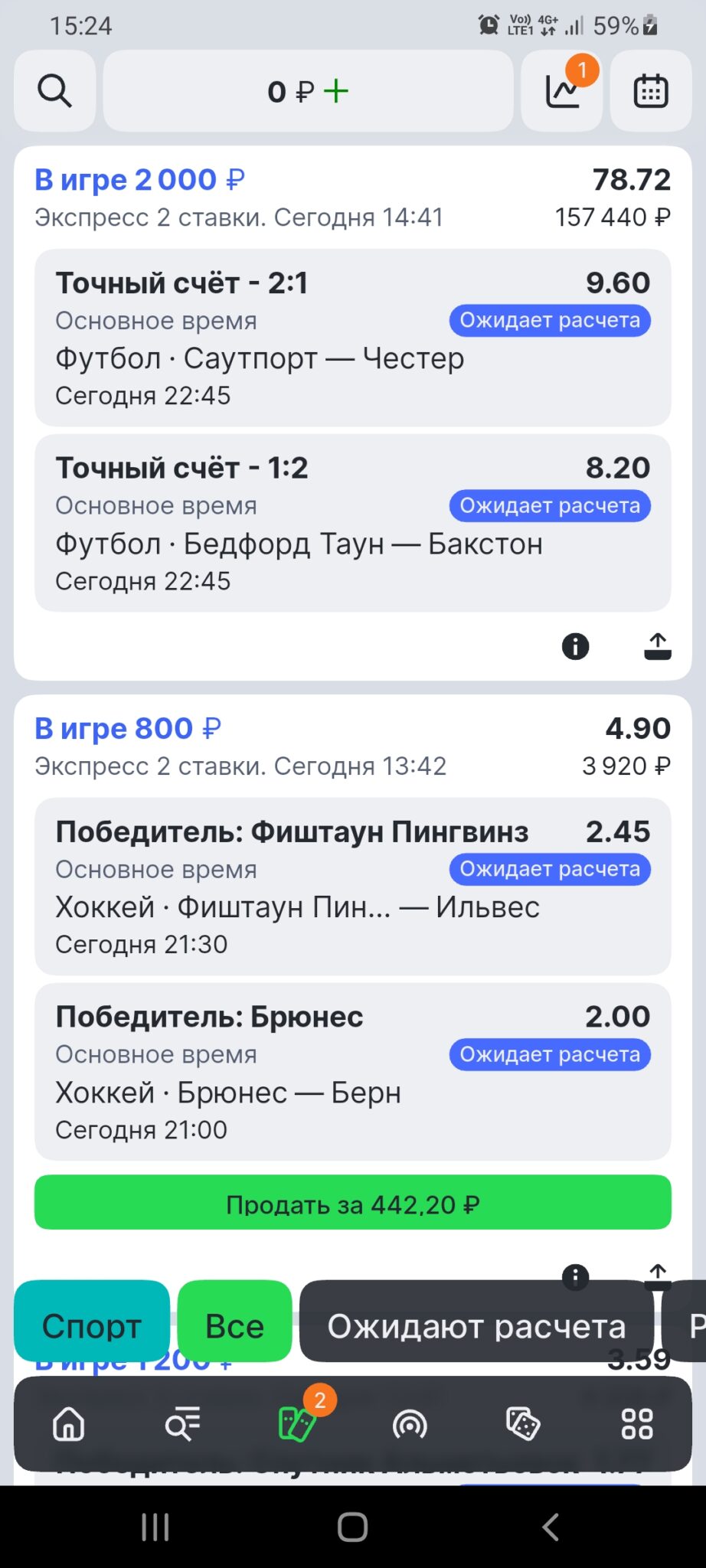- Продажа договорных матчей и экспрессов из событий на точный счет.