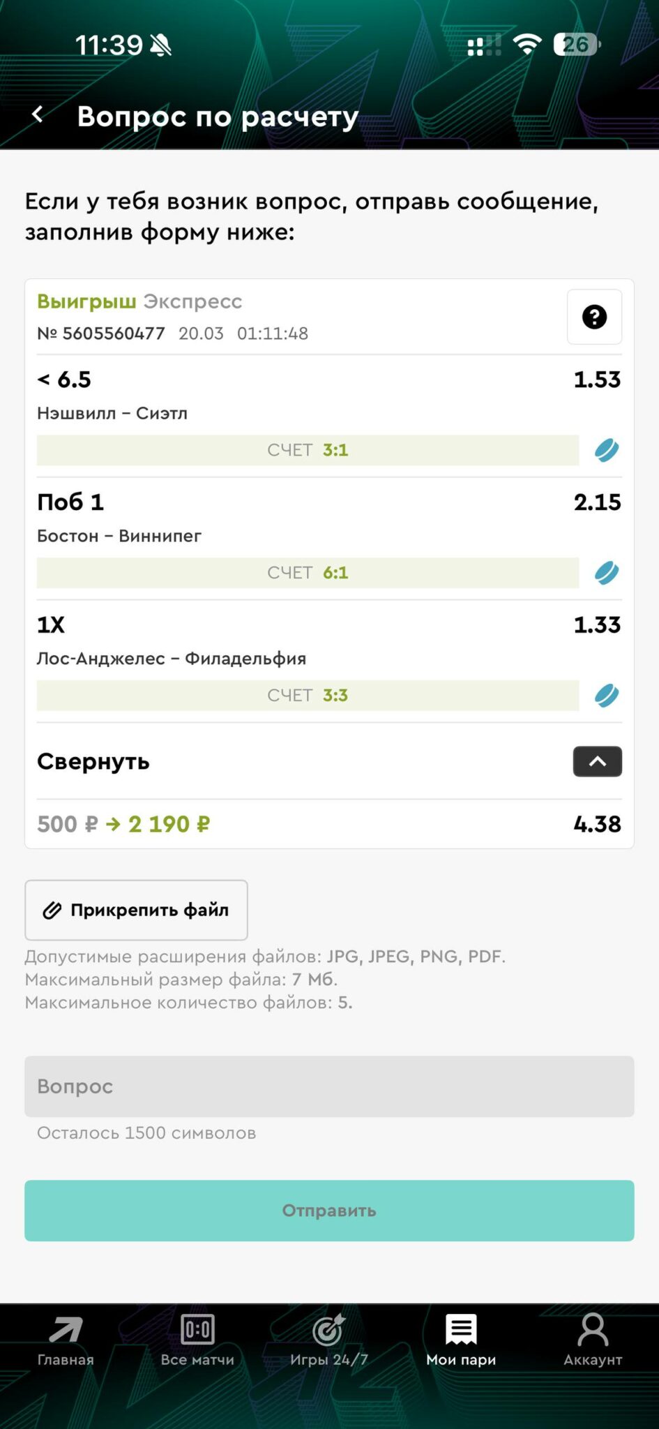 Сегодня утром подписалась и сразу попала на лайв марафон. Ставили на последние периоды в НХЛ и зашло 2 из 2