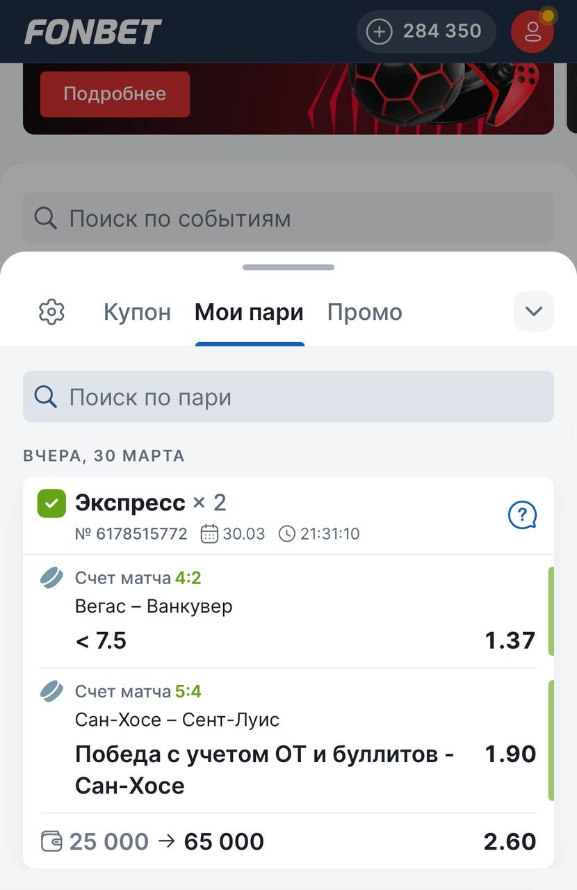 Спасибо за рекомендацию 👍 первая ставка и плюс — всегда приятно. Купил экспресс на НХЛ, будем проверять