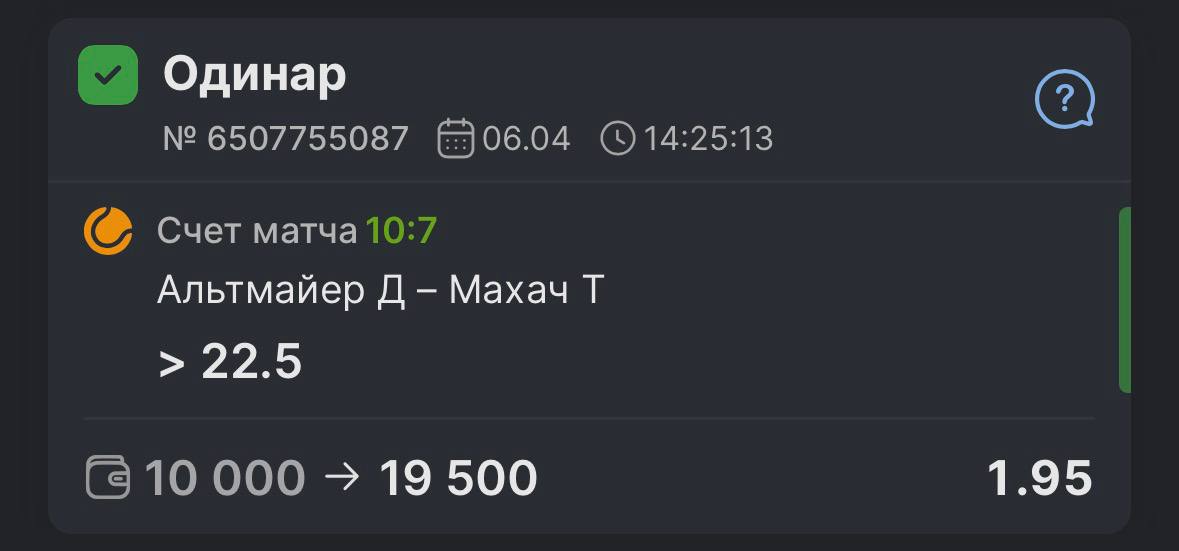 Очень грамотный аналитик, разбирающийся в теннисе, не заходит на рискованные события. Прогнозы рабочие. Вчера опробовал, сегодня продолжение!