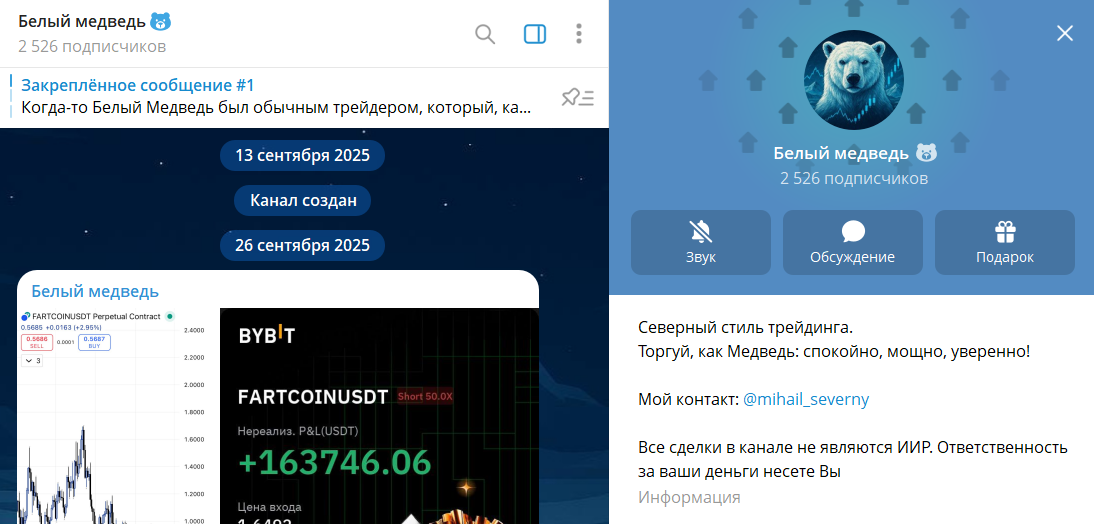 Внешний вид телеграм канала Белый медведь