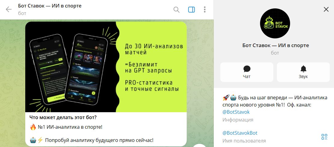 - приложение Бот ставок – ИИ в спорте: @BotStavokBot