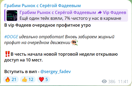Канал Telegram Грабим рынок с Серегой Фадеевым @sergey_fadev – реальные отзывы