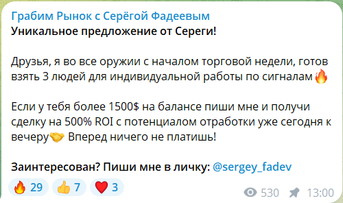 Отзывы о канале Грабим рынок с Серегой Фадеевым в телеграме