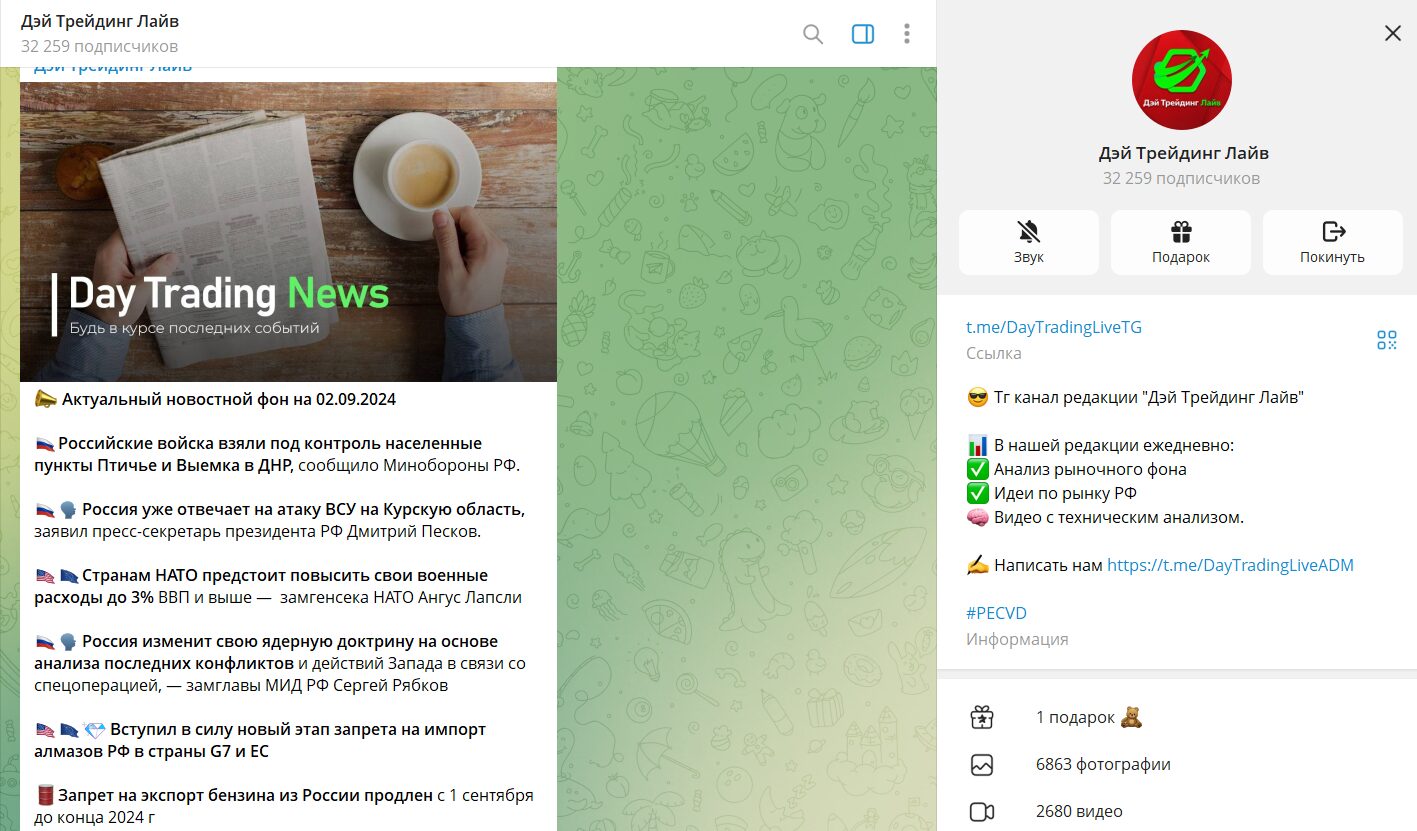 Вводные данные по каналу в телеграме Дэй Трейдинг Лайв