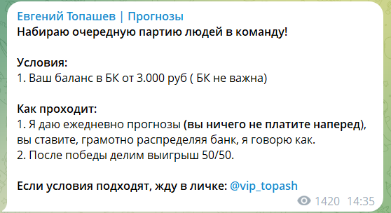 Отзывы о канале Евгений Топашев | Прогнозы @vip_topash в телеграме