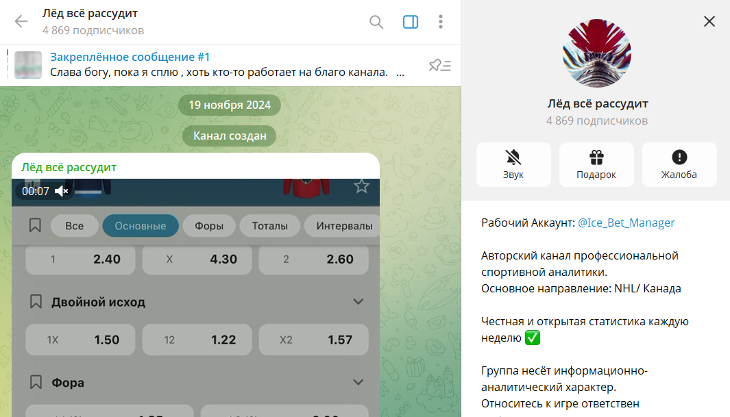 Отзывы о ставках на канале Лед все рассудит в телеграмме