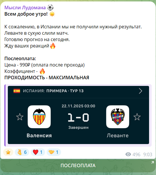 Молодой человек ведет сразу сетку каналов и создал их с целью заработка на доверчивых подписчиках. Дополнительно прогнозист получает доход от рекламы. Важно понимать, что предлагаемые прогнозы низкокачественные. Да, заработать удастся, но только нечестному владельцу, остальные же люди понесут убытки.