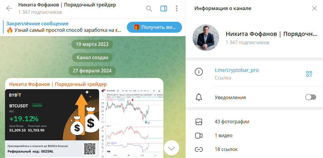 • канал Telegram Никита Фофанов | Порядочный трейдер: cryptobar_pro