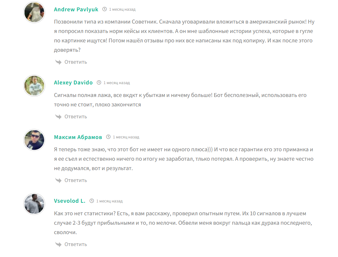 Данное сообщество нельзя назвать откровенно мошенническим, но основной интерес у представителей сервисов в том, чтобы новые люди проходили регистрацию у брокера, а потом проигрывали свои депозиты (именно на таких условиях работают трейдеры). Причем эти товарищи льют мотивированный трафик – у кого есть уже счет, заставляют заводить новый.