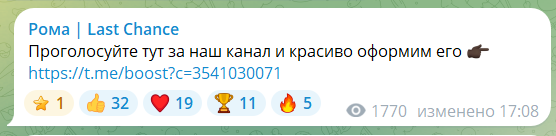 С первого взгляда может показаться, что активность у аудитории невероятная, но если разобраться в вопросе, не все так гладко. Для примера возьмем пост, где автор просит проголосовать за уровни канала: