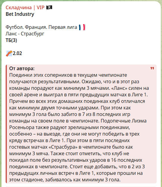 На канале ТГ Складчина | VIP прогнозы идут с разных порталов, поэтому акцента на определенном виде спорта нет. Некоторые советы выходят с обоснованием, некоторые без, коэффициенты от 1.65 и выше: