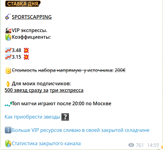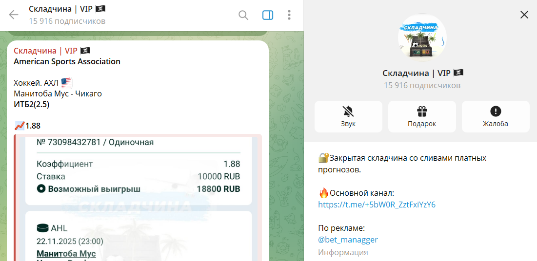 Отзывы о ставках на канале Складчина | VIP в телеграме