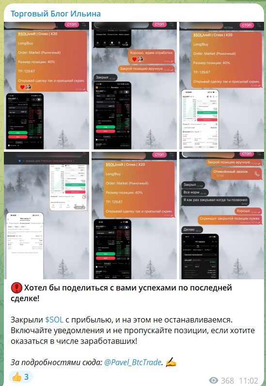 Практически каждый день на канале ТГ Торговый блог Ильина поступают предложение по совместным торгам. Для начала сотрудничества необходимо написать Павлу (@Pavel_BtcTrade) и обсудить все детали: