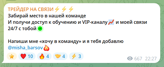 Участникам канала ТГ Трейдер на связи Миша Барсов предлагает вступить в VIP клуб, где лучшие торговые сигналы и бесплатное обучение: