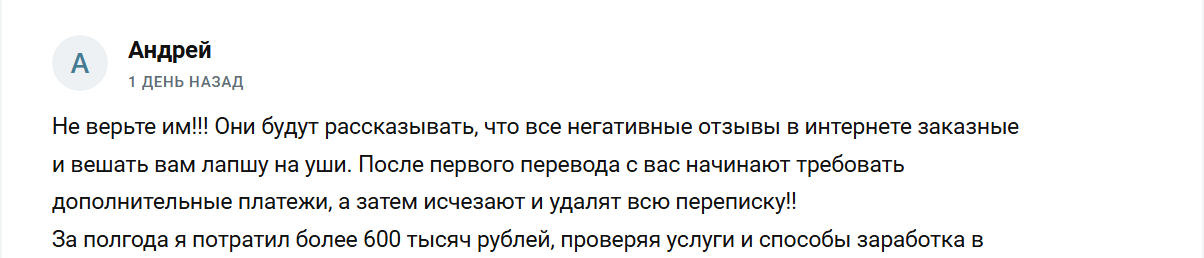 Миша Барсов (misha_barsov) о своей трейдинговой деятельности делится исключительно положительными откликами в виде переписок с участниками приватного клуба. Информация о проекте на сторонних сайтах противоположная. В обзорах обычно отмечают отсутствие достоверной статистики, а в комментариях посетители жалуются, что не стоит верить в пустые слова, ведь по предложенным сигналам идет слив: