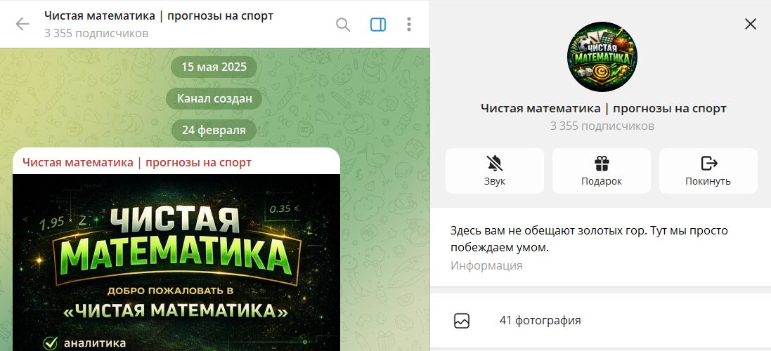 - канал Telegram Чистая математика | прогнозы на спорт: +vWuiGgFtsKM5ZjJi
