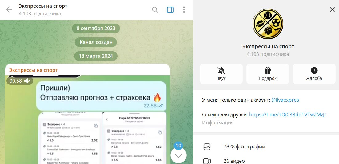 Каппер Илья (@ilyaexpres) специализируется на аналитике футбольных, баскетбольных и хоккейных матчах. В группе ежедневно выходят бесплатные прогнозы, а на платной основе предложены экспрессы с высокими котировками. По ставкам ведутся отчеты – так доказывают высокий процент выигрышей. Рекламы букмекеров пока нет.