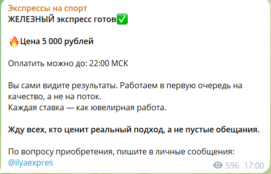 Внимания к платным услугам на канале в телеграме Экспрессы на спорт бесплатными прогнозами. Свой выбор каппер никак не обосновывает, просто дает голые цифры: