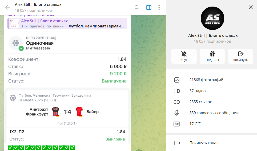 Отзывы о канале Alex Still | Блог о ставках в телеграме