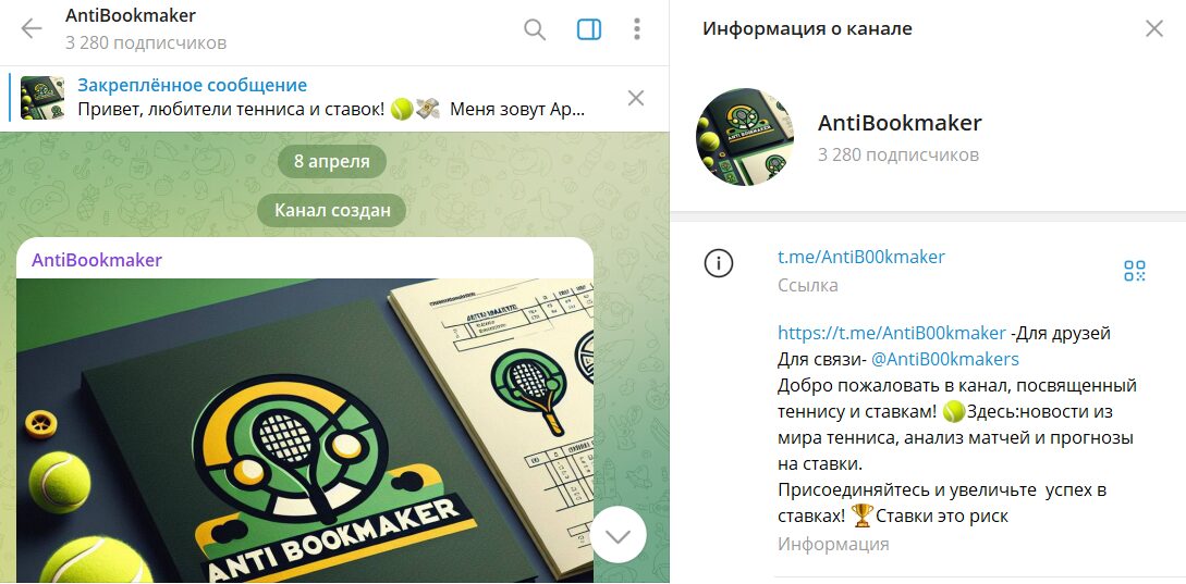 Большинство теннисных прогнозов на канале TG AntiBookmaker сопровождаются обоснованием. Ставки делаются на ординары и экспрессы. Для аналитики выбираются популярные соревнования, которые проводятся сегодня: