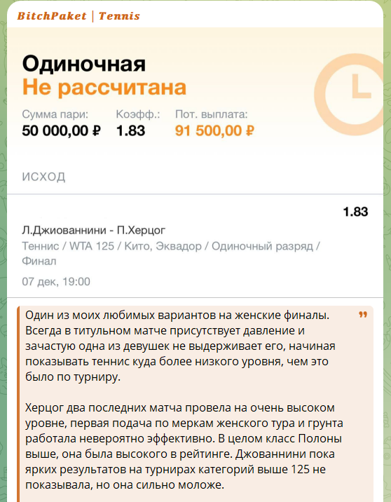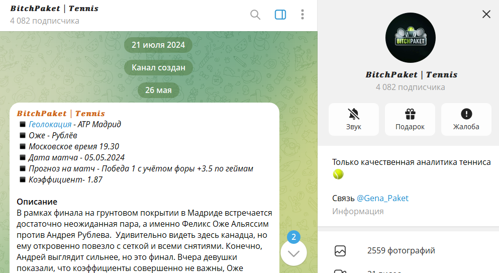 Отзывы о канале BitchPacet | Tennis в телеграме