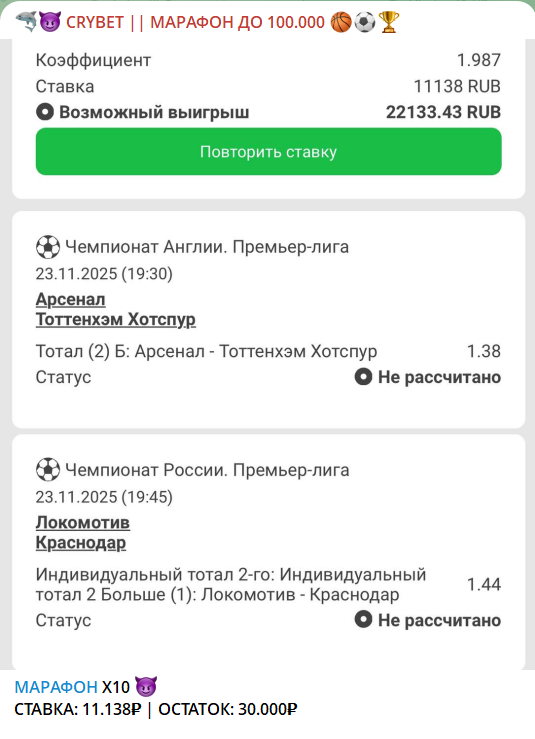 Отзывы о ставках на канале CRYBET Марафон до 100000