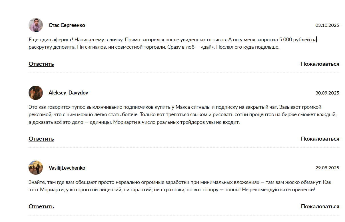 Отзывы о трейдере Максе Мориарти (Moriarty_Connect)