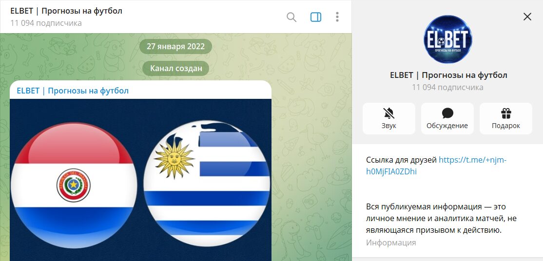 Информация по телеграмм каналу ELBET Прогнозы на футбол