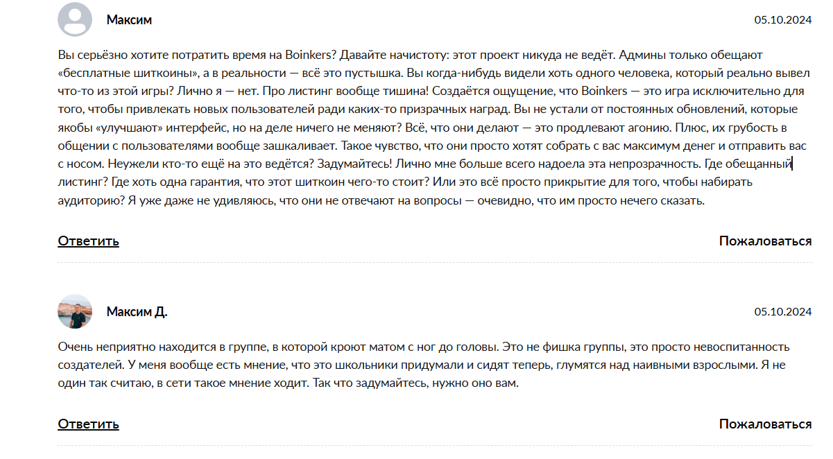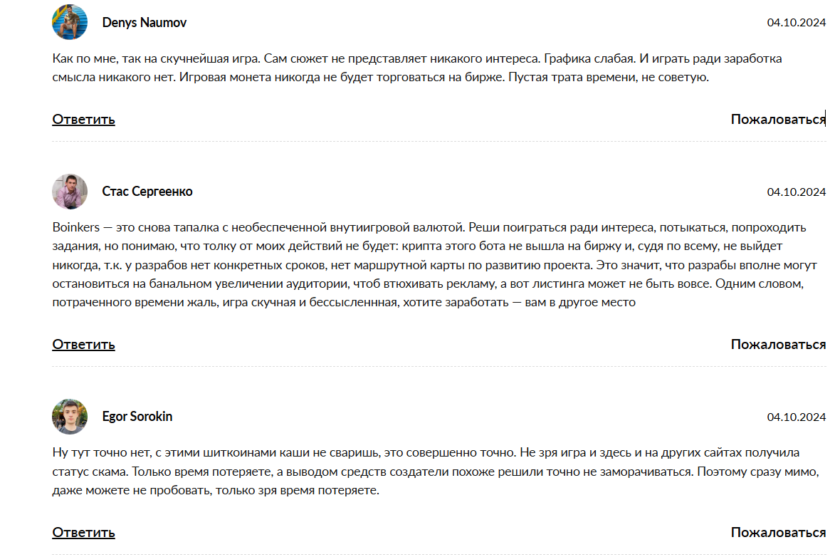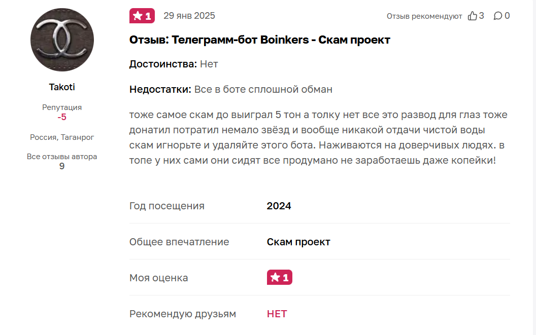 Отзывы о боте Boinkers: типовые претензии пользователей