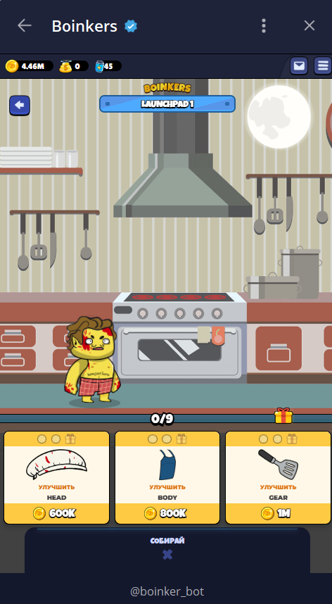 Список заданий у Boinkers в целом стандартный для Telegram мини игр: