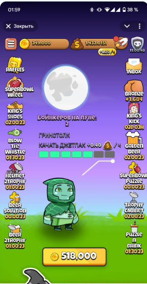 Прокачка персонажей – один из центральных элементов. Логика простая: прокачал → отправил «на Луну» → повысил почасовую добычу/влияние на будущий дроп. Чем больше таких персонажей/полетов, тем выше показатели аккаунта.