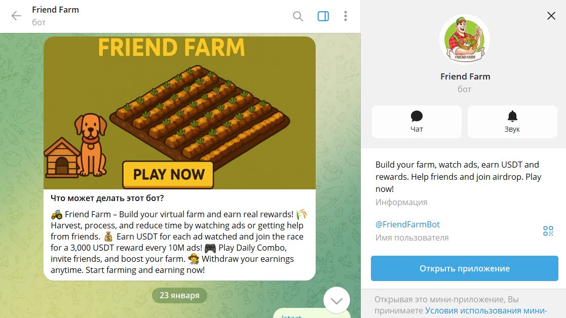 Бот Telegram Friend Farm @FriendFarmBot – реальные отзывы