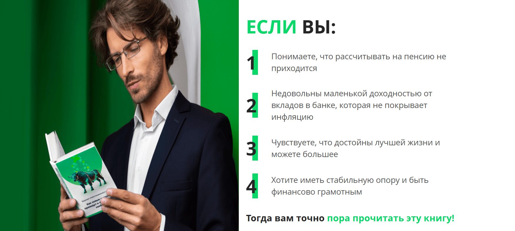Книга идеально подойдет для огромной аудитории, которая понимает, что на пенсию не прожить, доход по вкладам не перекрывает инфляцию, что хочет жить лучше и быть финансово образованным.
