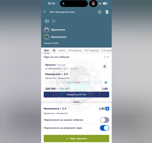 Отзывы о ставках на канале Max in NHL KHL в телеграме