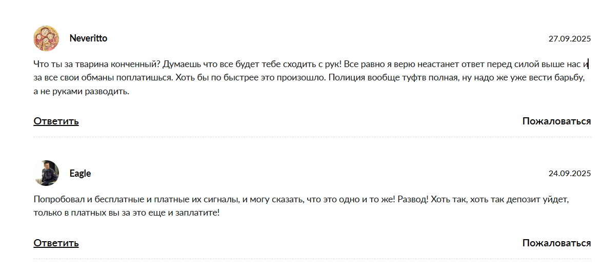 Трейдер Maxim (maxvrynke) о своей деятельности отзывы не выкладывает, просто иногда скидывает сообщения, что подписчики интересуются закрытой рассылкой. О проекте есть информация на сторонних сайтах. Все публикации с низким рейтингом, есть и жалобы под обзорами, вот примеры: