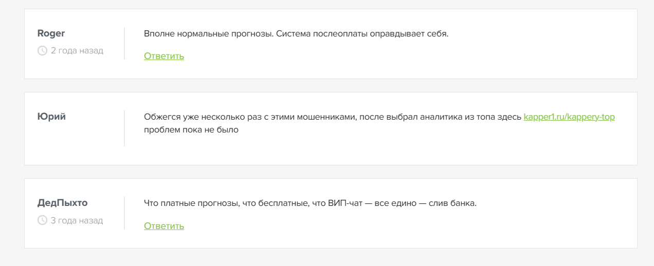 Отдельно Александр (@royal_analytics) отзывы подписчиков не публикует. В комментариях негатива нет, но опять же, там практически никто не общается. На тематических сайтах кто-то хвалит прогнозы, а кто-то пишет жалобы, рассказывая, что бесплатные и платные ставки приводят к полному сливу: