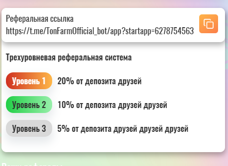 Партнерская программа в боте телеграмм Ton Farm