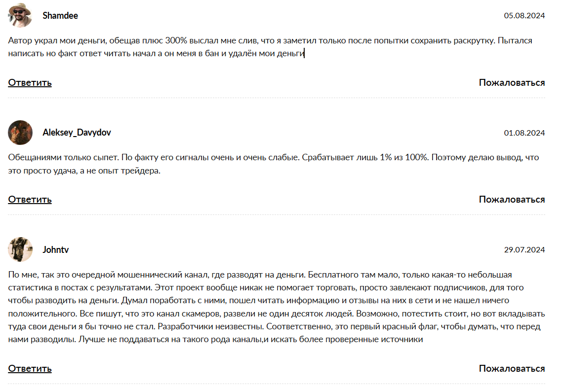 Трейдер Даниэль @daniel_x100 о своих услугах демонстрирует постоянно переписки якобы с довольными клиентами, которые заработали большие деньги. Смысл в том, что практически на всех тематических сервисах с обзорами оставлены жалобы. Кто-то рассказывает про слив депозитов, кто-то на хамское отношение: