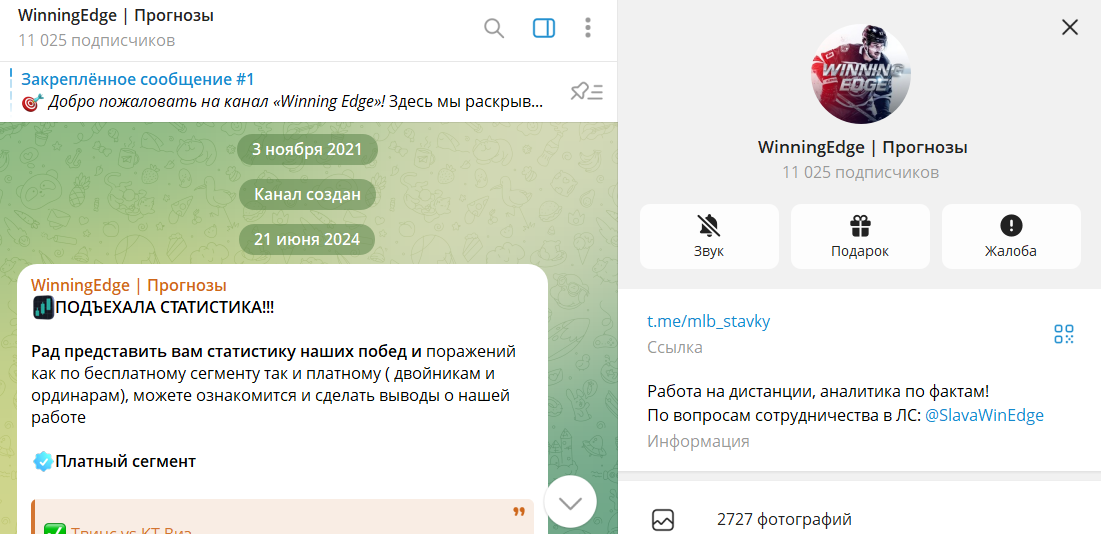Winning Edge | Прогнозы – это канал в телеграмме со ставками на хоккей. Роль аналитика исполняет Слава (SlavaWinEdge). По выданным советам в открытом доступе выкладывают отчеты и хорошие отзывы клиентов. Анализ показал, статистика на 100% липа, и заработать в букмекерской конторе с каппером не получится. Мнение команды KAPER.PRO подтверждают жалобы в интернете.