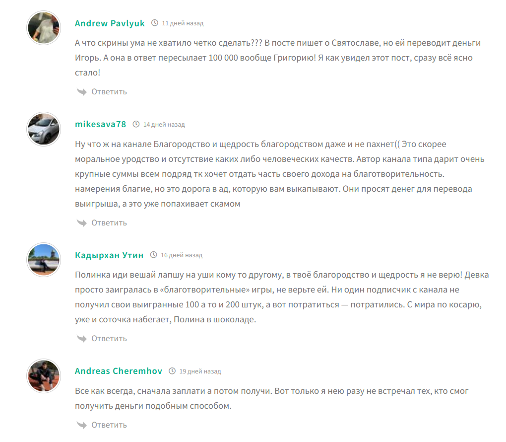 Отзывы о Полине polya_dar1t с канала Благородство и щедрость в телеграме