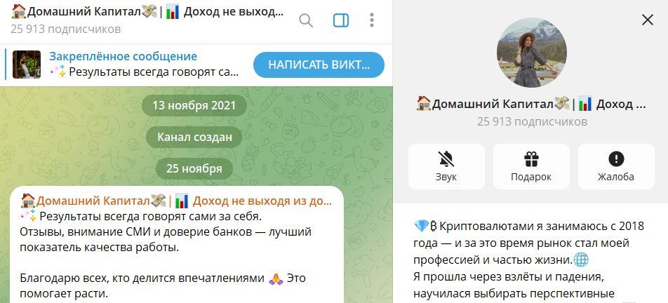 В социальных сетях найти честное инвестиционное сообщество, работающее без официальных сайтов и лицензии, невозможно. Доказанный факт, раскрутками депозитов на акциях, крипте и ставках на спорт занимаются мошенники. Инвестор Виктория с телеграмм-канала «Домашний капитал | Доход, не выходя из дома» не стал исключением. При проверке отмечено, что после получения первого денежного перевода девушка с видео и фото начинает просить повторные депозиты. Итог подобных вложений всегда плачевен – блокировка клиента и удаление переписки.