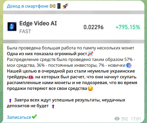 - «Безопасный пампинг крипты | Прибыль каждый день»;