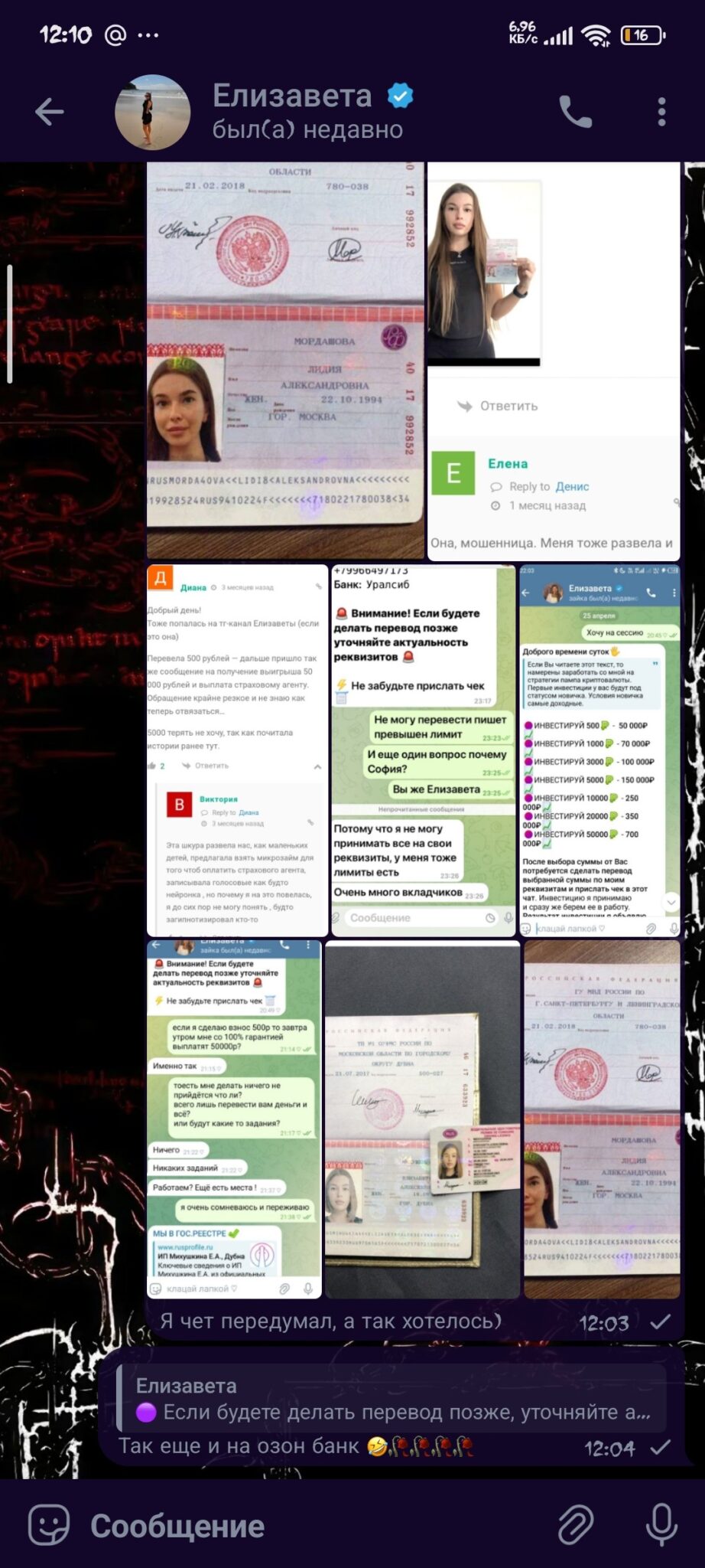 Можете поделиться этими скринами, тоже попалась на эту овцу, скинула мне и свой паспорт и все, но поздно одумалась сделать скрины, оказалась в ЧС и переписка удалена, хочу тоже ее наказать