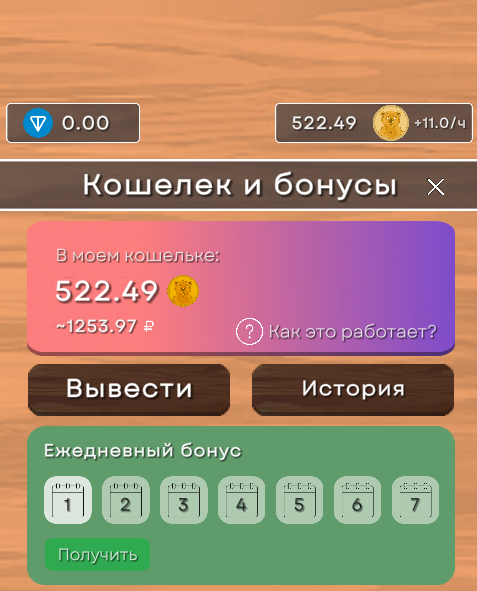 В магазине можно приобретать кристаллы, которые можно использовать для прокачки зверька, они также необходимы при оформлении выплаты заработанных средств. В категории «Вывод» можно получать ежедневные бонусы: