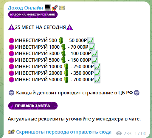 На канале в телеграмме Доход ОНЛАЙН Елизавета Алексеевна Михушкина предлагает слишком хорошие условия, чтобы они оказались правдой:
