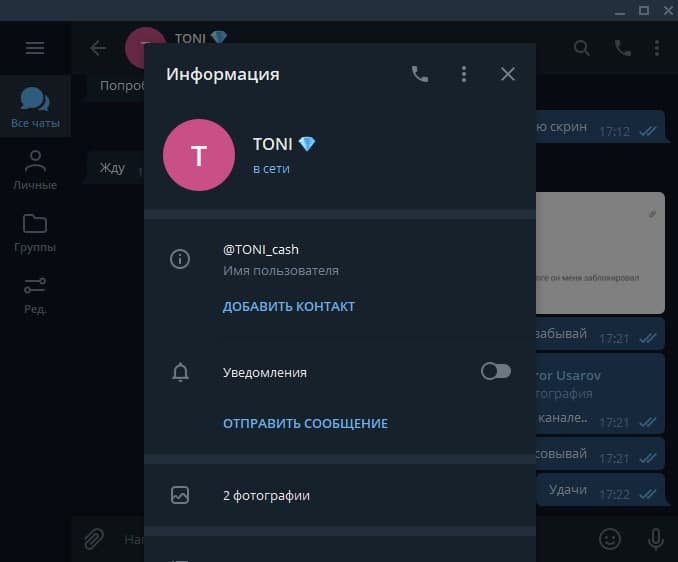 Лохотрон, типа выиграла в телеграмм 150000 р, попросил закинуть 2011 р, закинула(. Позже пишет, не может перевести, просит 5000 рублей, сказала нету, пишет займи. Хорошо остановилась. Большая, а в сказки верю)) Потом он просто удалил меня с группы розыгрыша. Он там выкладывает отзывы, с благодарностью, скринами, матами, которые сам пишет себе.